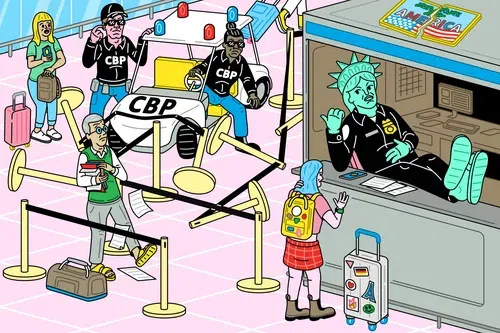 A warning about what? US Customs and Border Protection says a reduction in illegal crossings has freed up its law enforcement officers to do more “vetting” at the border. “Lawful travelers have nothing to fear from these measures,” says Hilton Beckham, assistant commissioner for public affairs at the CBP. “However, those intending to enter the US with fraudulent purposes or malicious intent—don’t even try.”