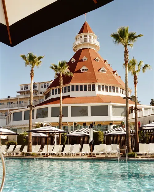 The striking red towers of San Diego’s Hotel Del Coronado.