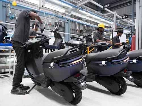 Putting the finishing touches on Ather scooters at the company’s factory in Hosur, Tamil Nadu.