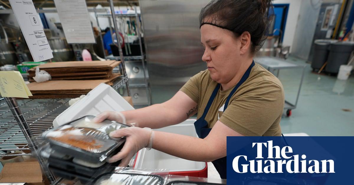 Amanda Peters packs food for delivery to the elderly by Meals On Wheels in Dallas, Texas, on Friday.