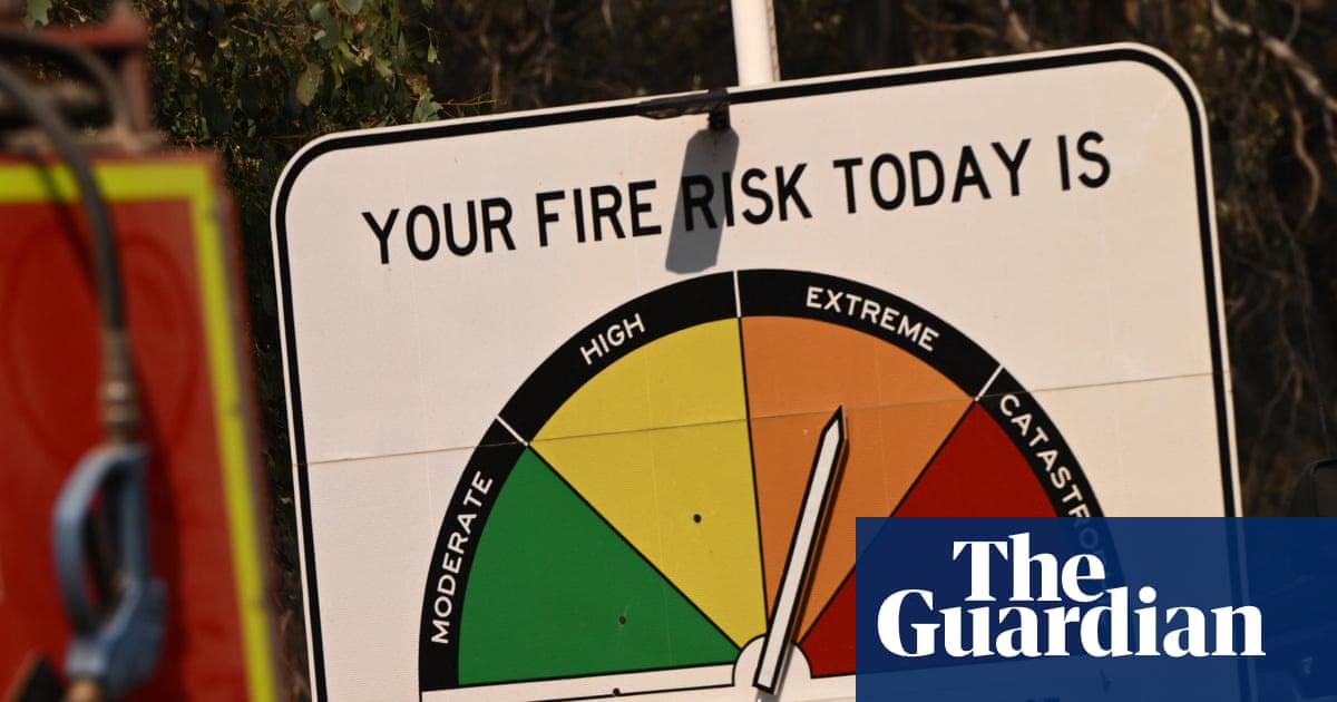 A warning sign in the heat-ravaged town of Ruffy, in Victoria, Australia, on 12 January.