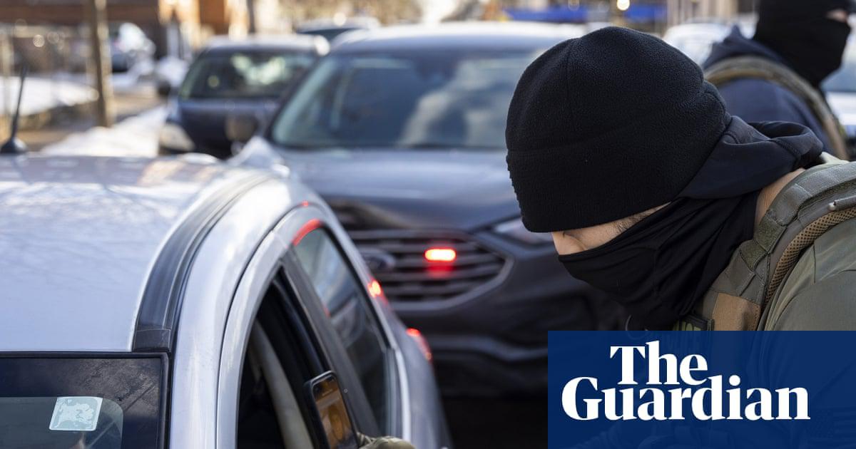 A border patrol agent scans the face of a driver in Minneapolis on 13 January 2026.