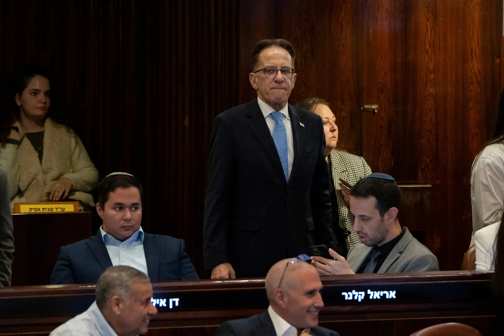 Tzachi Braverman, (standing,) the chief of staff to Prime Minister Benjamin Netanyahu of Israel, was interviewed under caution on Sunday.