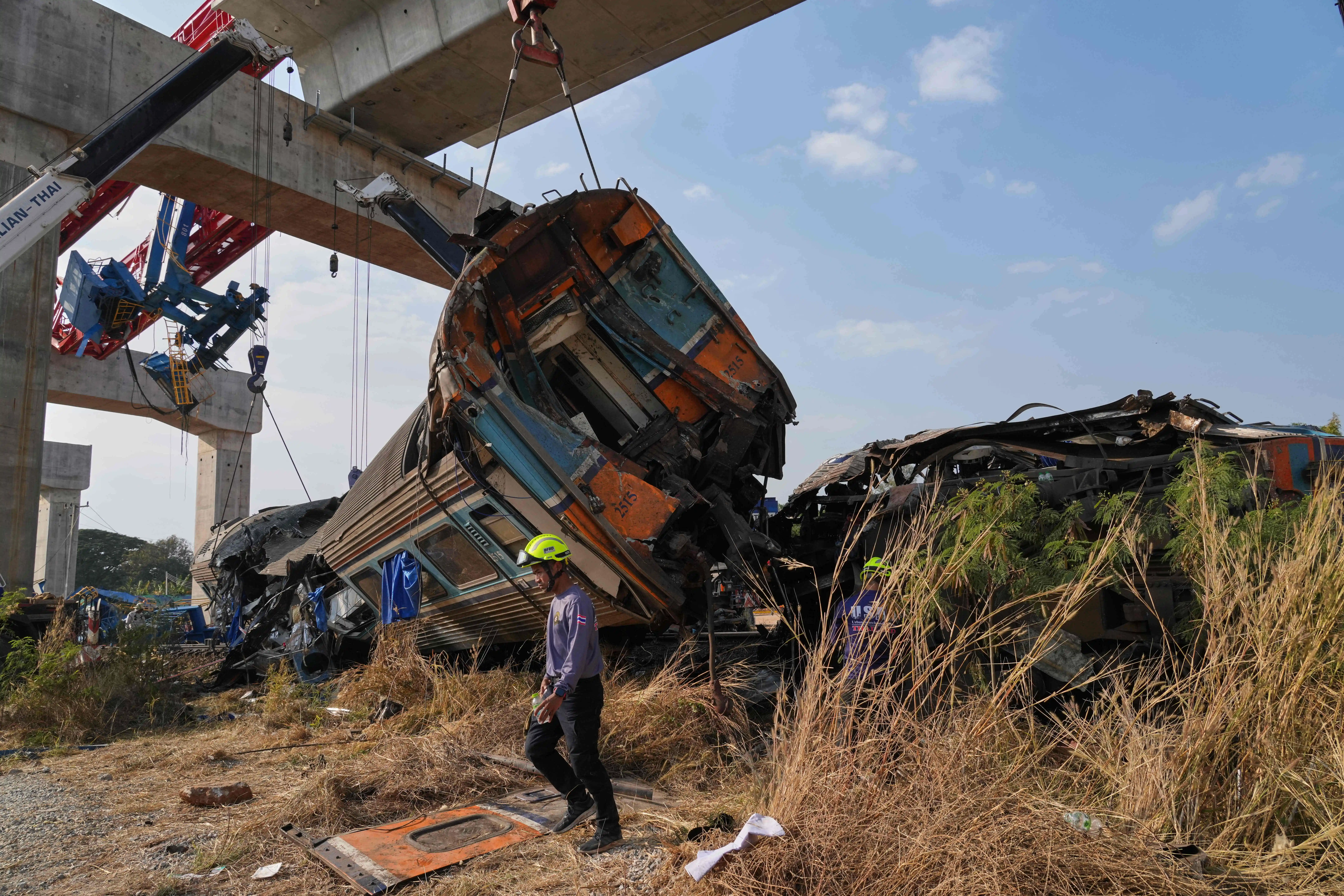 泰国客运列车被起重机砸中,造成至少32人死亡