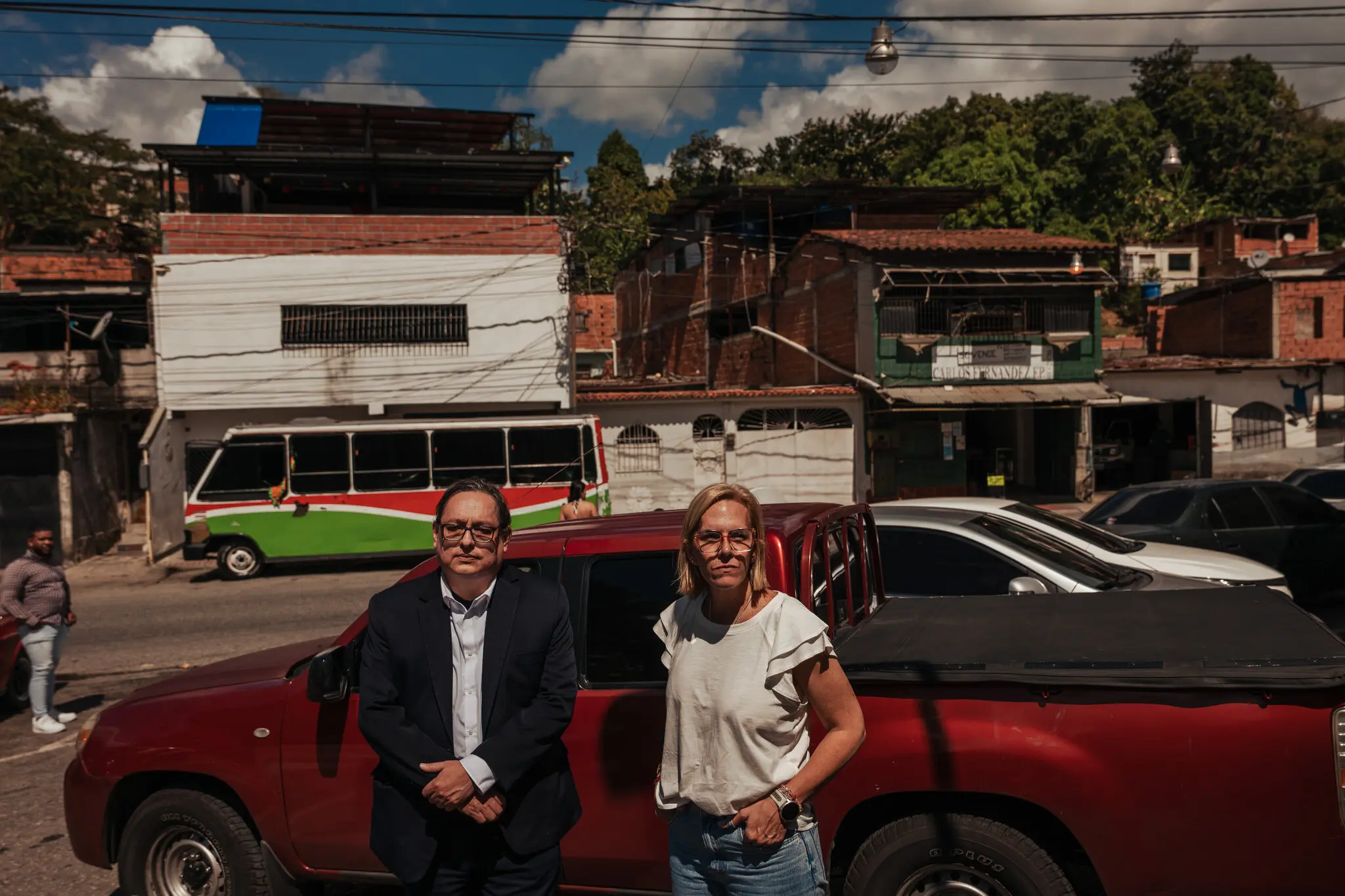 Mariana González de Tudares, right, daughter of the former Venezuelan presidential candidate Edmundo González, waiting this month outside a detention center in Caracas, Venezuela.