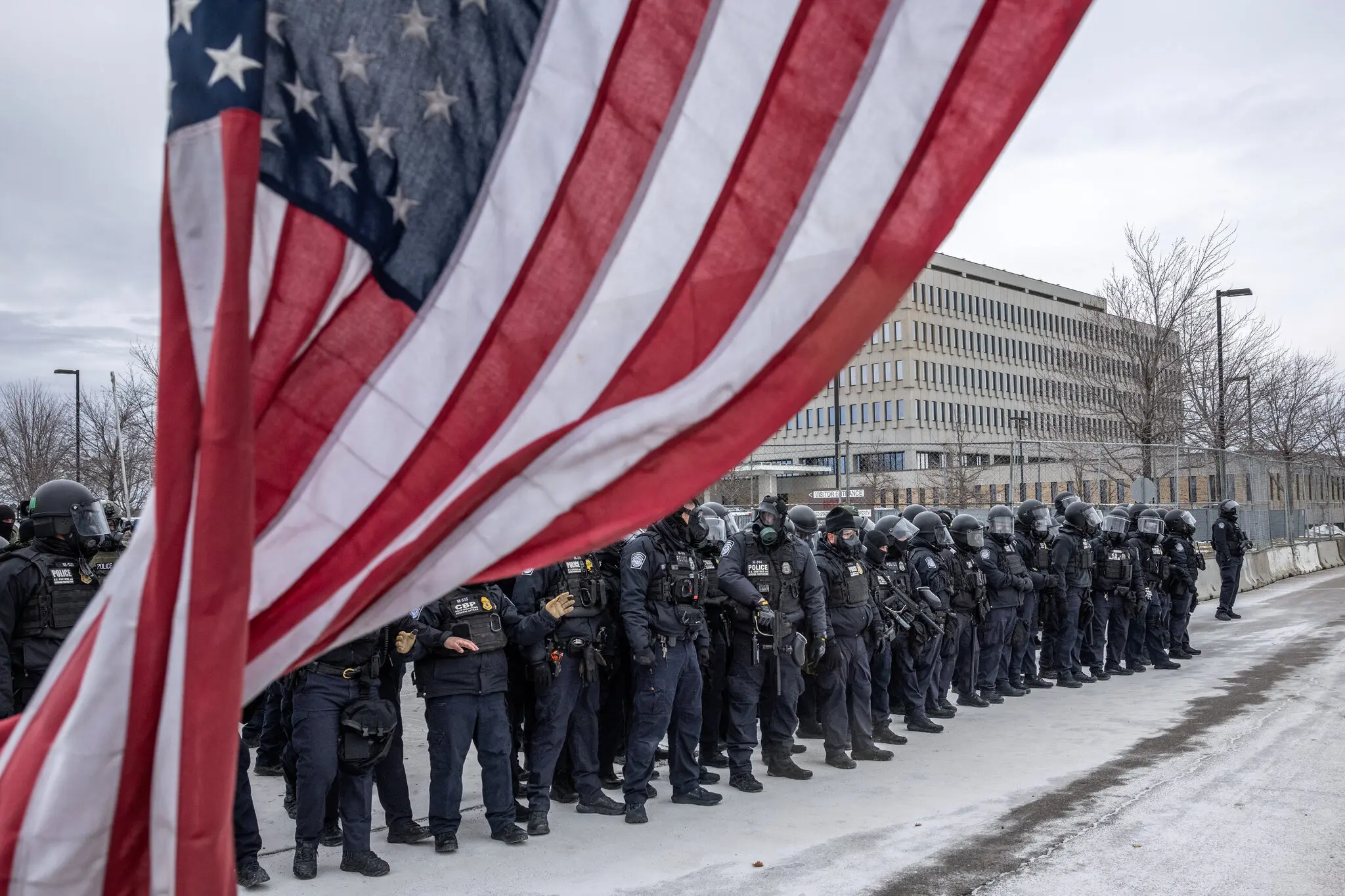 Whipple is now the home base for thousands of immigration agents. It is the first stop for those caught in the immigration sweeps throughout Minneapolis-St. Paul, and where, through freezing weather and occasional tear gas, protesters have kept watch, chanting and blowing whistles, as masked agents drive in and out.