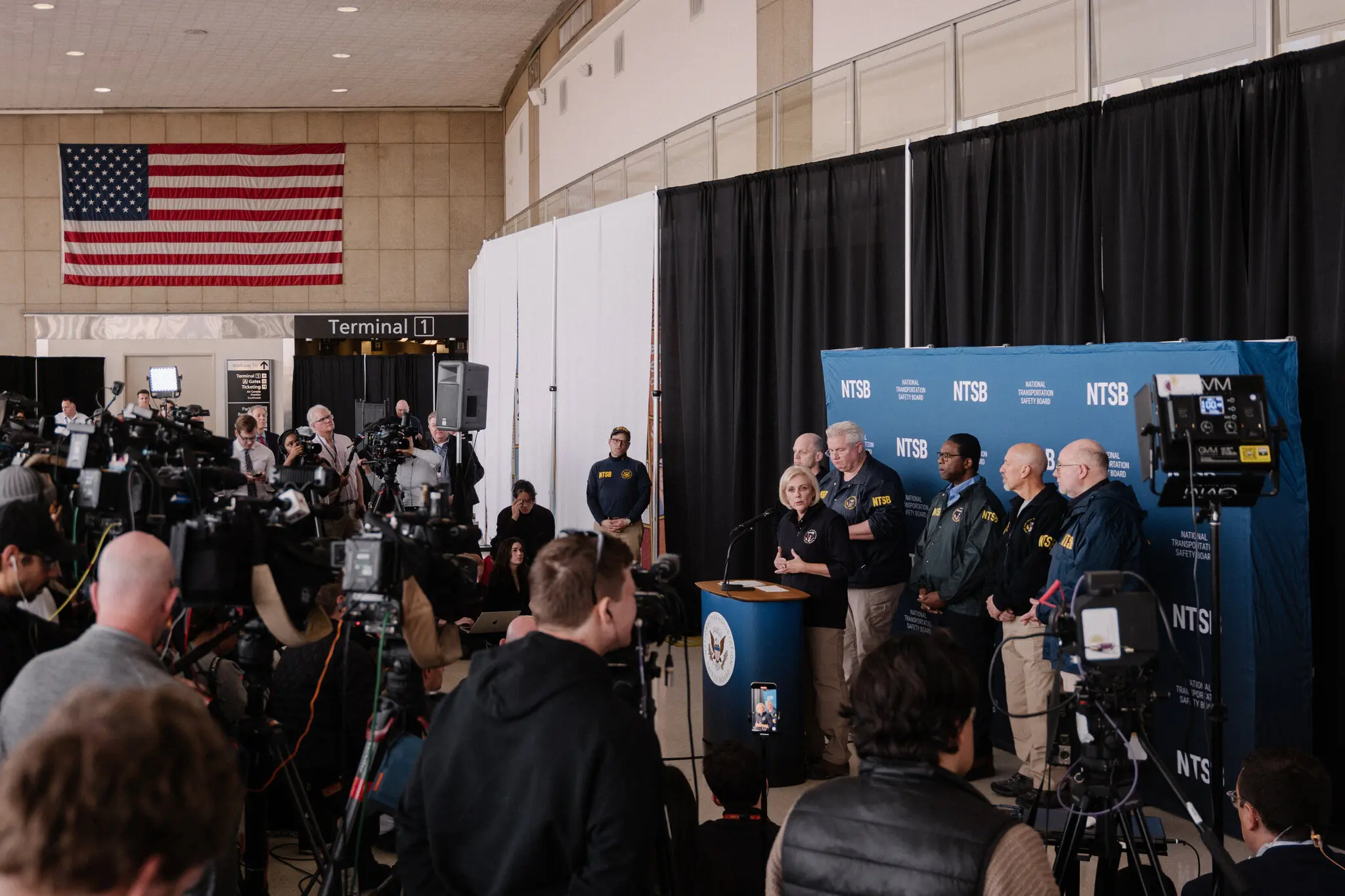 Jennifer Homendy, the National Transportation Safety Board chairwoman, speaking after the crash at Ronald Reagan Washington National Airport last year. The board plans to publish a full report on the crash.