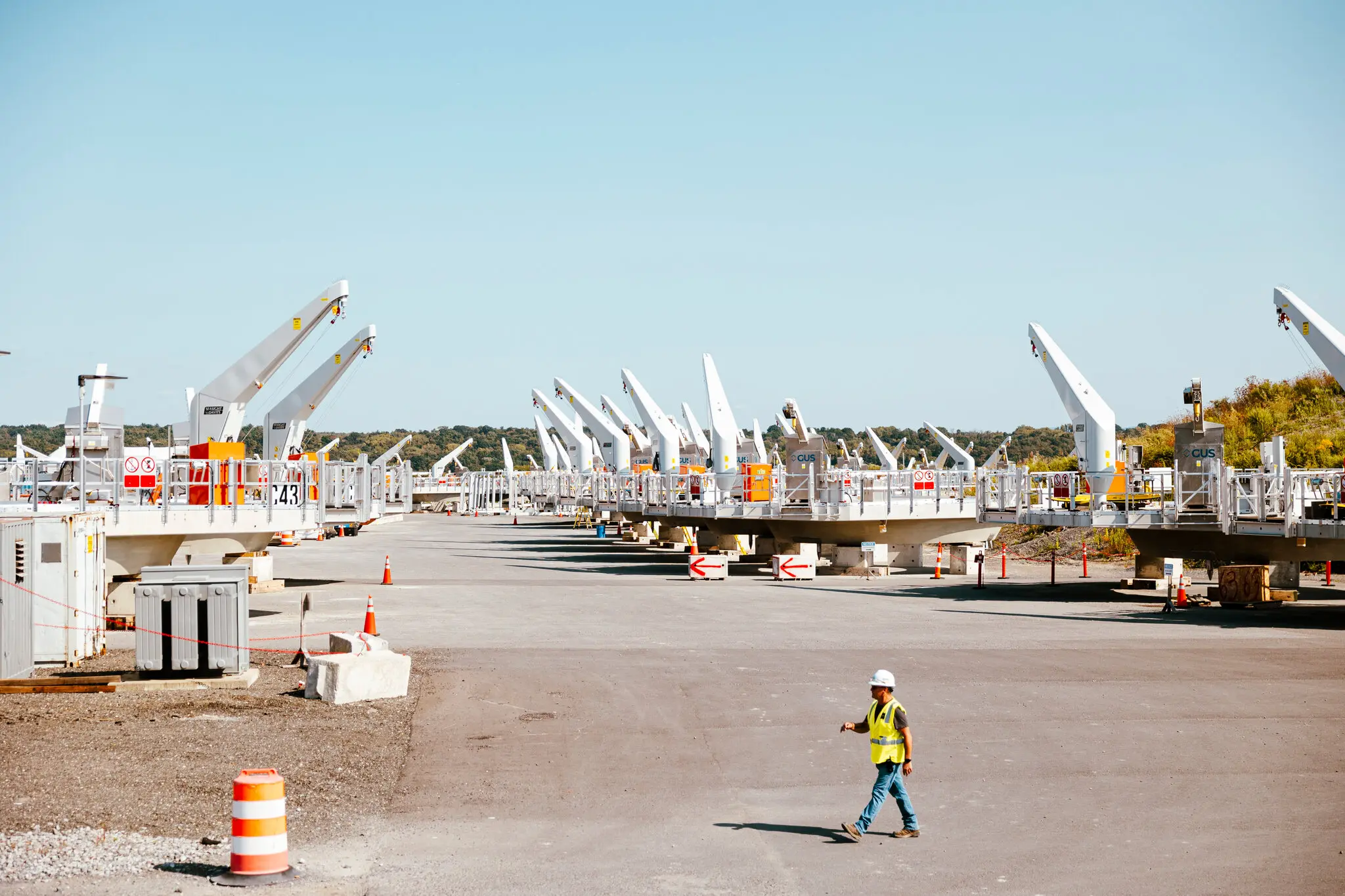 A staging area for Orsted’s Sunrise Wind project at the Port of Coeymans south of Albany, N.Y., in 2024.
