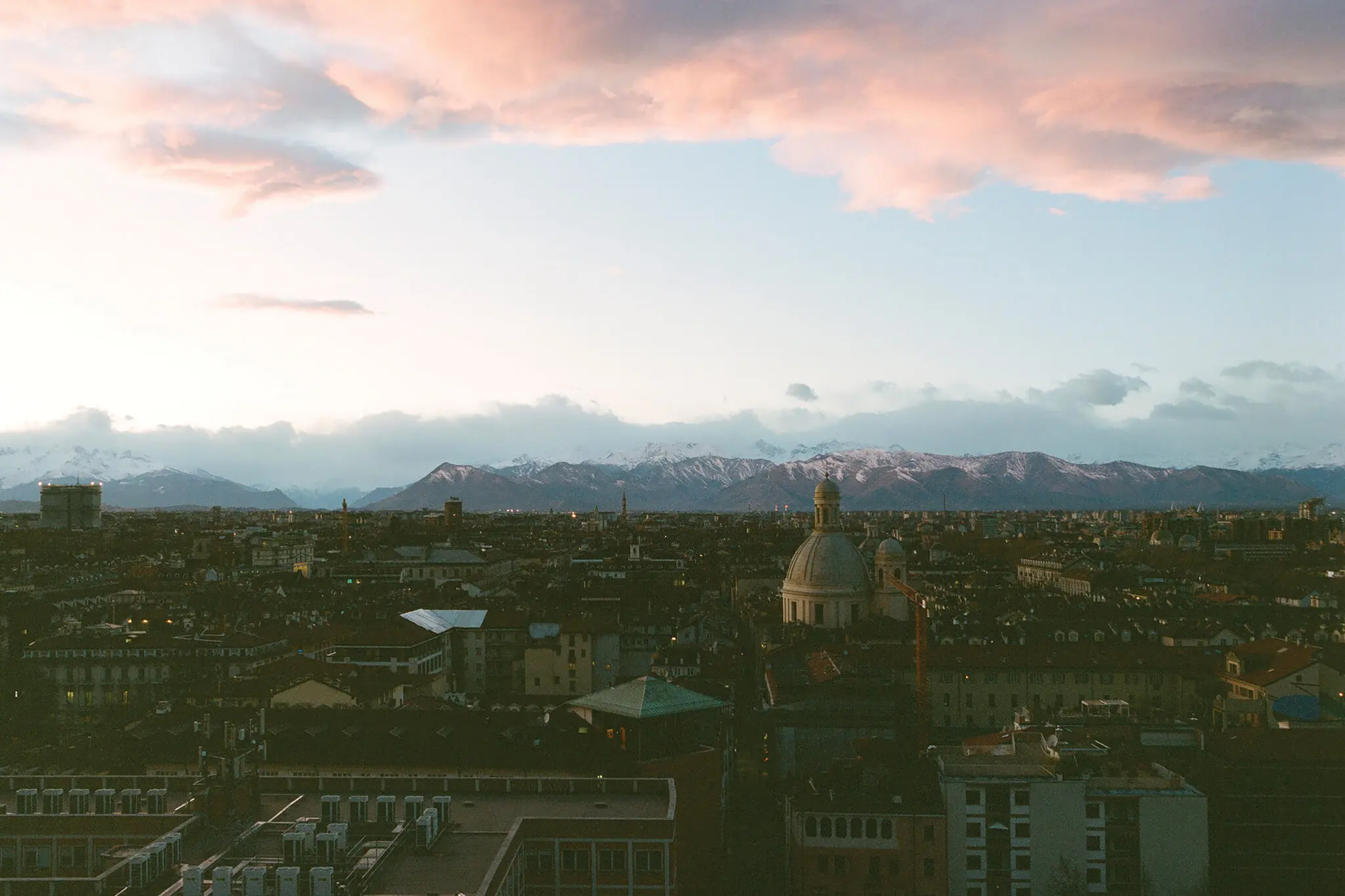 Turin, Piedmont’s provincial capital, as seem from the Duomo. Located in the foothills of the western Alps, the city is Italy’s fourth largest.