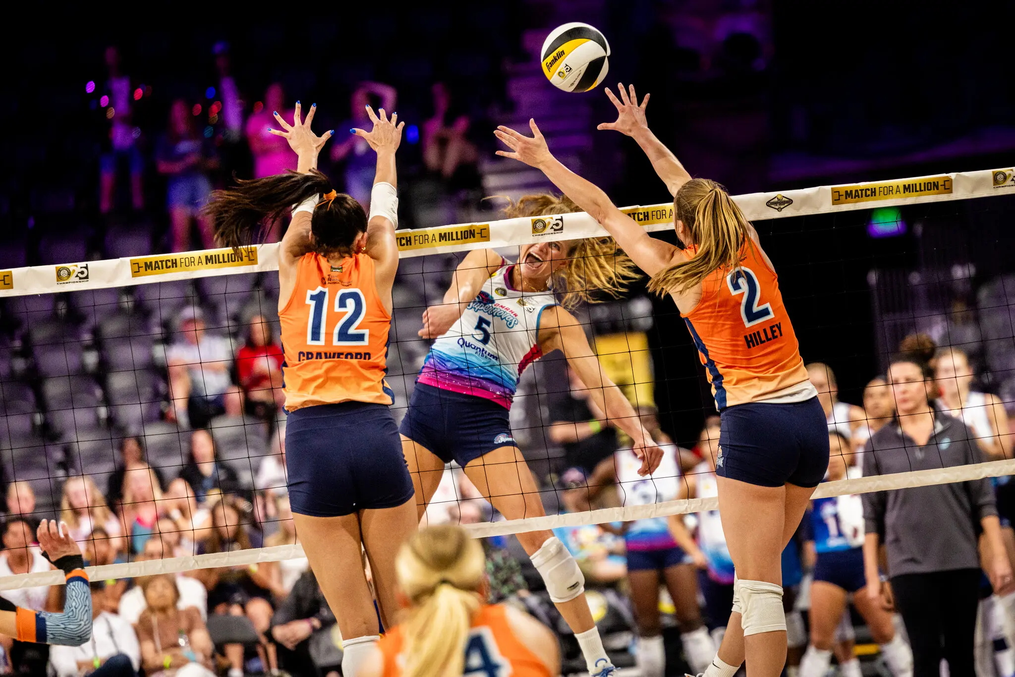 The Omaha Supernovas in the Pro Volleyball Federation semifinals last year. When P.V.F. started in 2024, it was the only traditional professional women’s volleyball league in the United States.