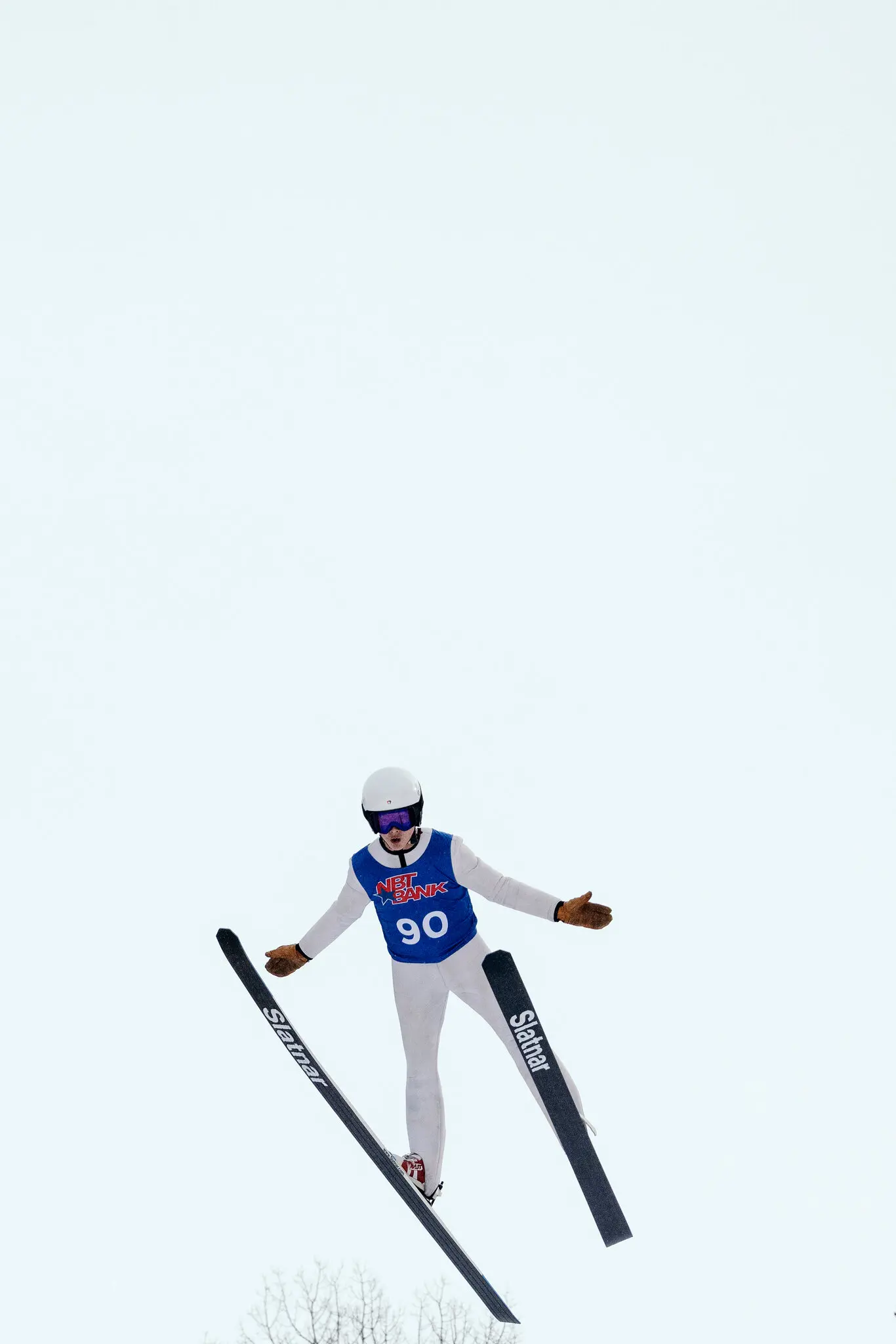 A junior jumper at the 2026 Salisbury Jumpfest, which celebrated 100 years of ski jumping at Satre Hill in Connecticut over the weekend.