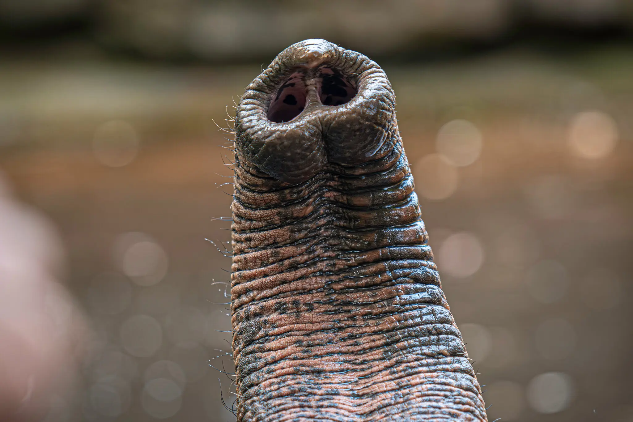 Elephants lack the necessary muscles to whisk with the roughly 1,000 whiskers on their trunks.