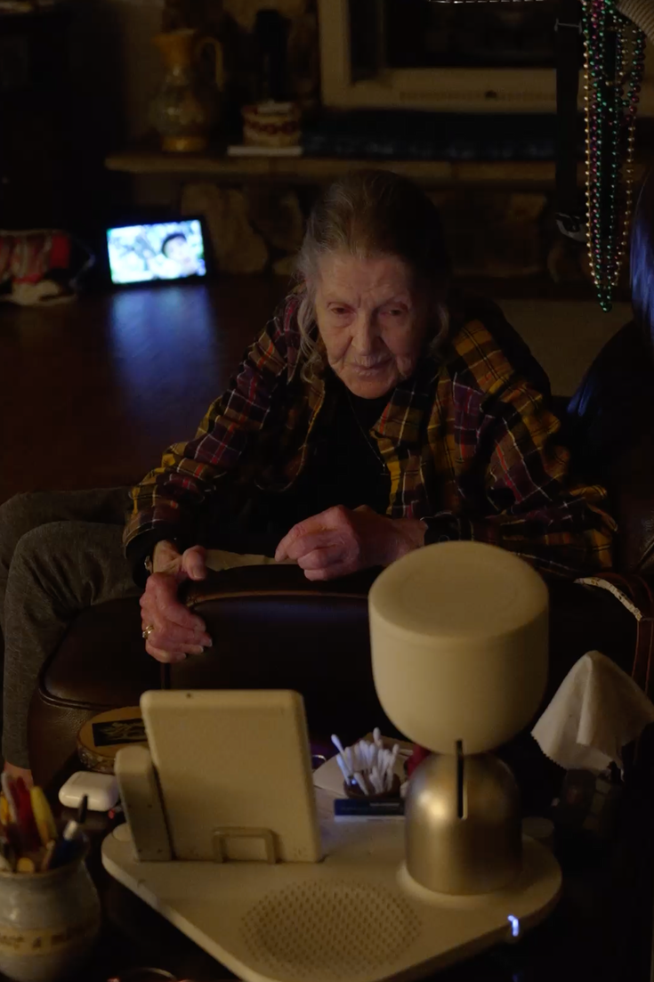 Jan Worrell and her ElliQ. Washington State’s health department provided it to her as part of a pilot program.