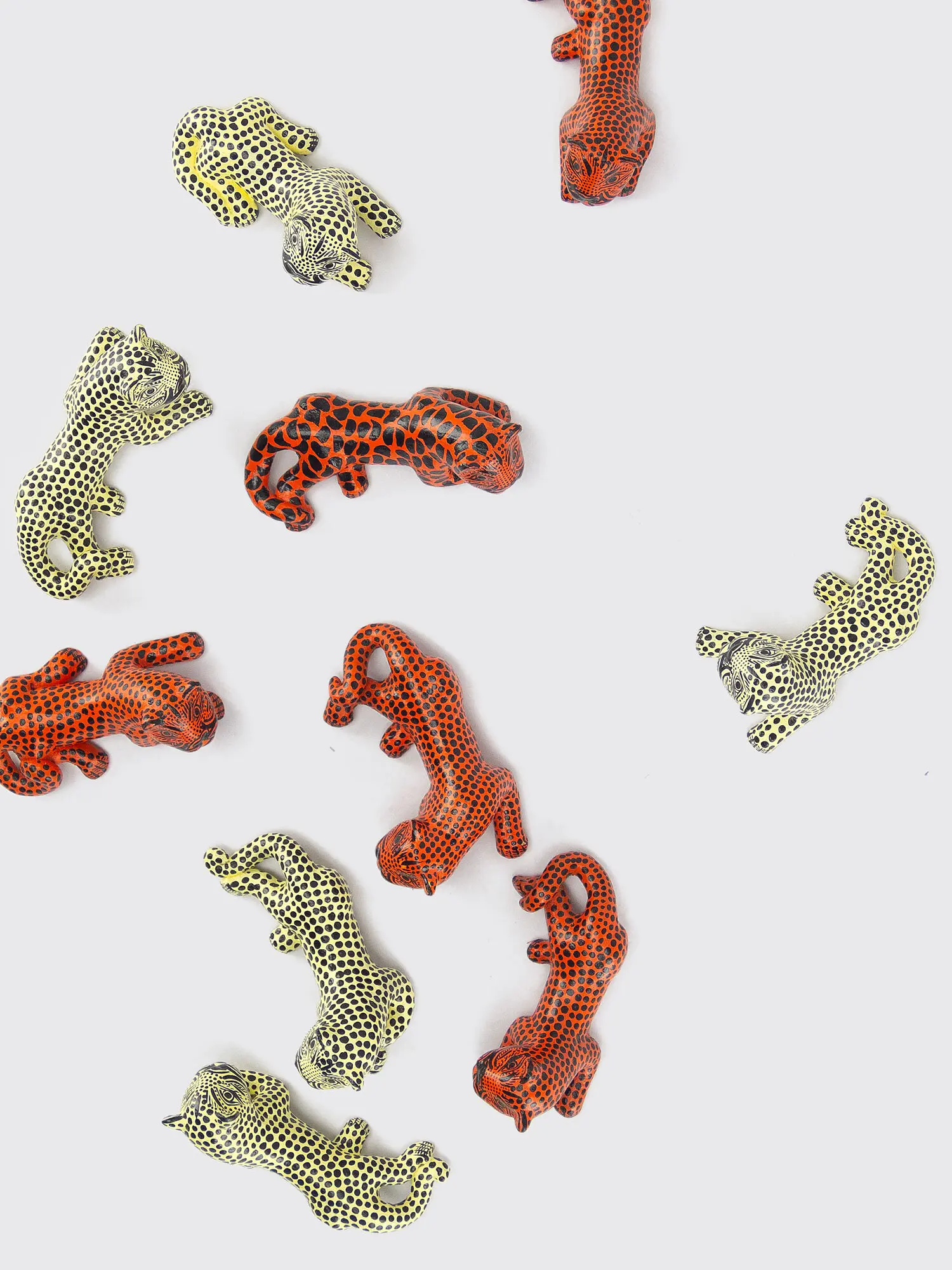 A pair of hand-painted clay jaguars by Utilitario Mexicano evokes a sentiment of protection, strength and companionship.