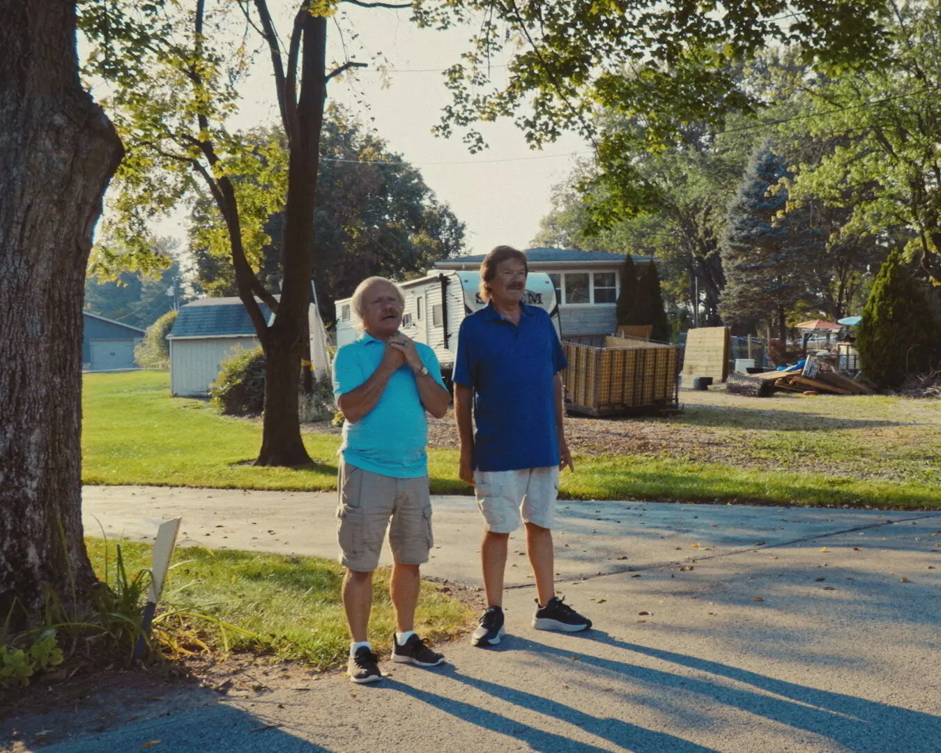 From left, Darrell and Bruce Blasius, in a scene from “Neighbors.” The said their neighbor, in Kokomo, Ind., was causing them trouble by keeping smelly livestock on a suburban property not zoned for it.