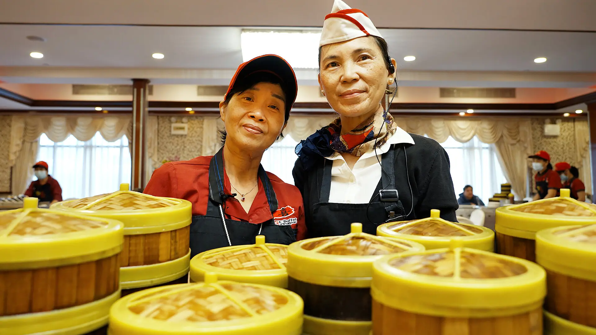 Amid the chaos, you’ll find Cheong Yin Ho and Pik Chan, two longtime workers here. Ms. Ho, 68, coordinates the kitchen and the servers, managing what goes in the dim sum carts. Ms. Chan, 60, rolls one of the carts.