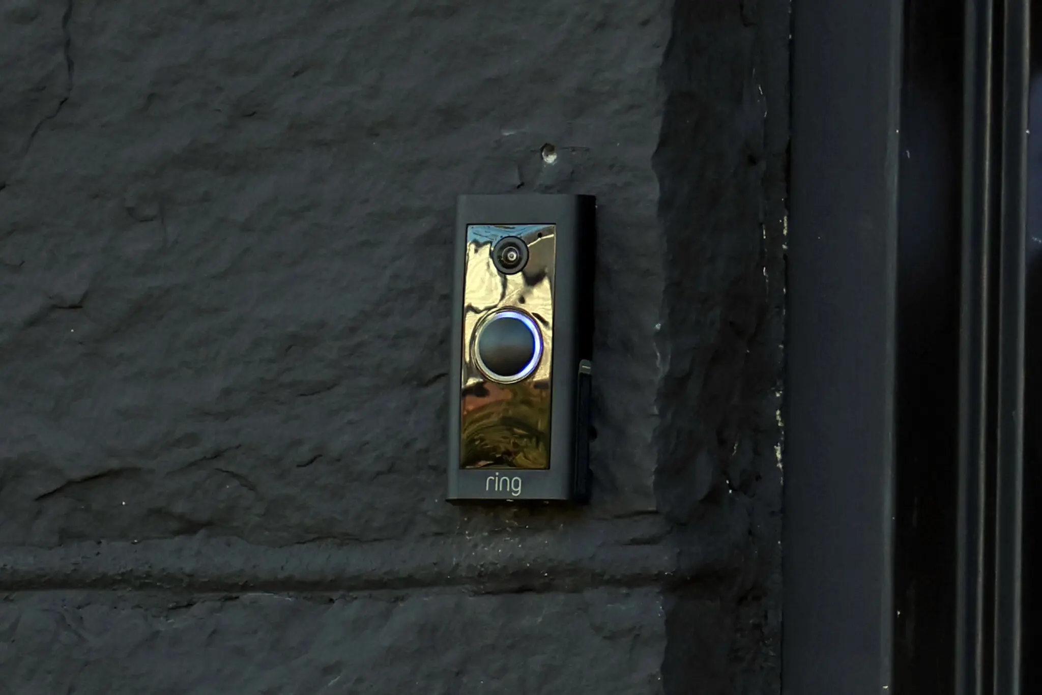 A Ring doorbell security camera on the front of a building in New York. The planned integration of those cameras to activate a search function gave rise to criticism after a Super Bowl ad.