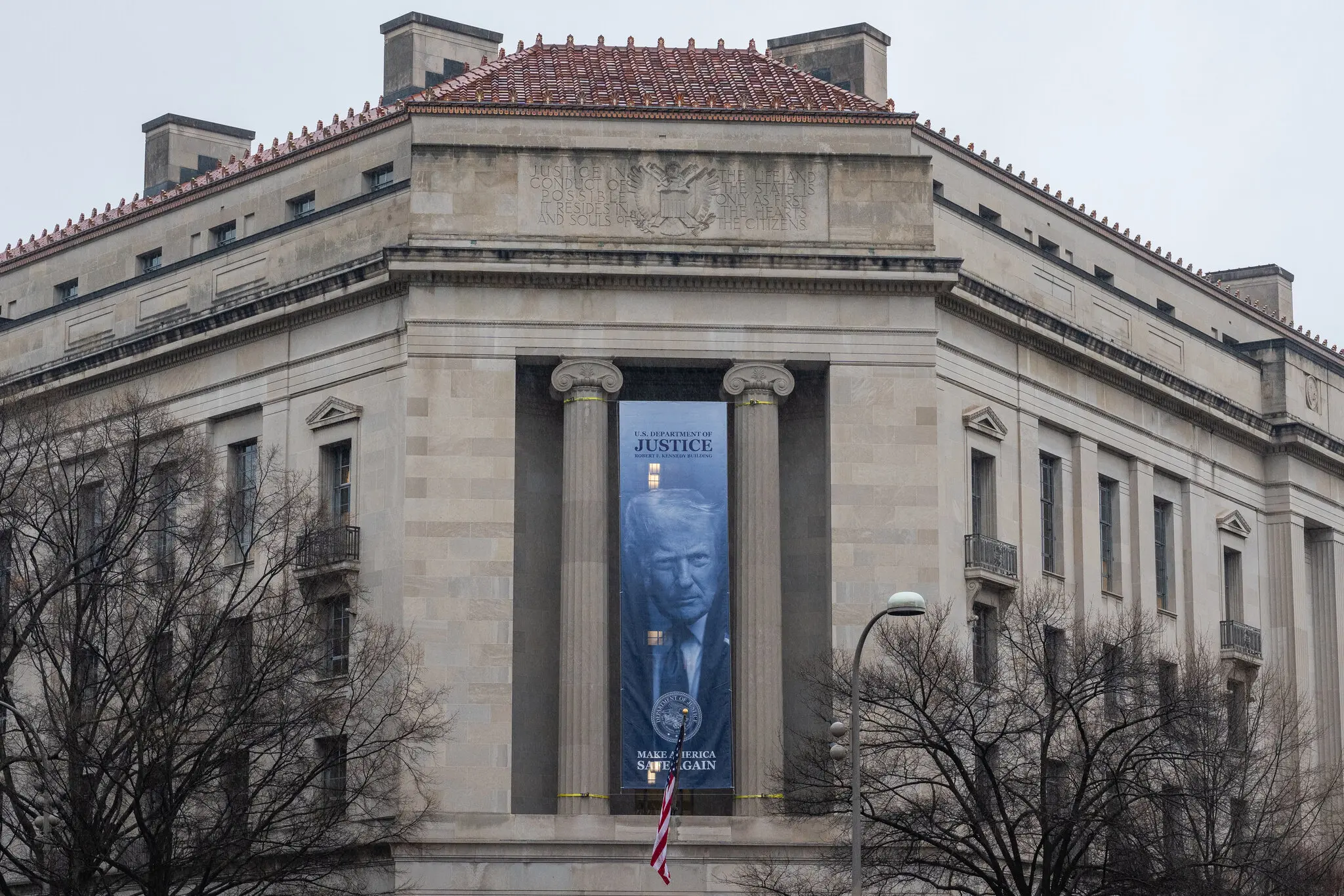 The signage is a strikingly prominent indication of how Mr. Trump has eroded the separation that has long existed between the Justice Department and the White House to protect the department from political influence.